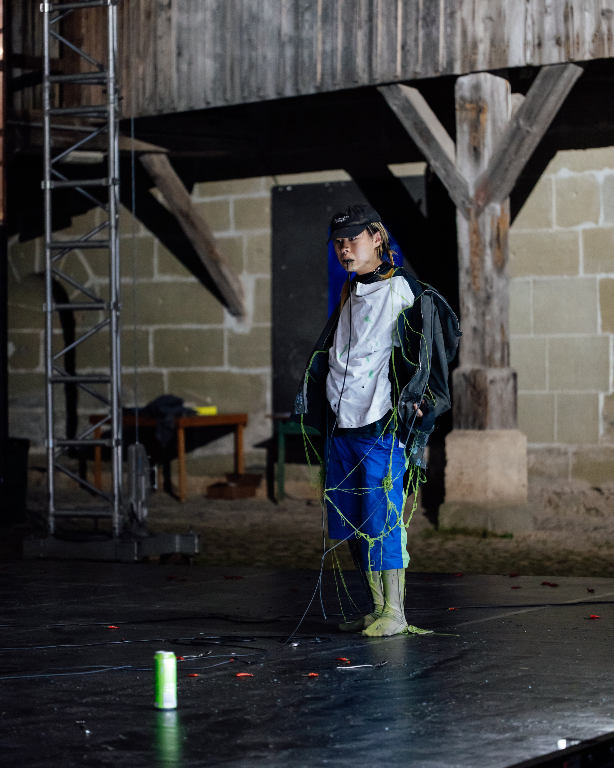 Influencé par le film cyberpunk “Tetsuo: The Iron Man” réalisé par Tsukamoto Shinya en 1989, “CUTTING MUSHROOMS” rend visible une transformation contrariée du corps. Dans cet inachèvement, une figure étrangement inexacte apparaît et irradie une confusion sensible. Cette sculpture en mutation brasse des objets reconnaissables et différents tissus qui composent un language mythologique abstrait.
